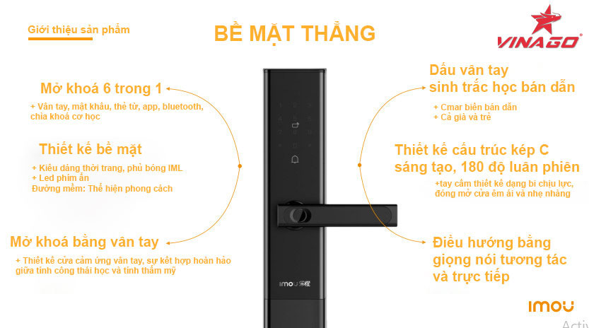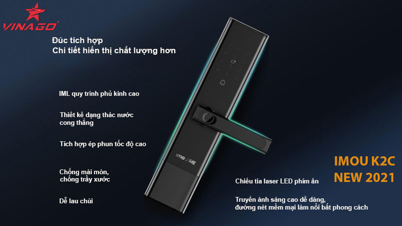 Khoá cửa vân tay IMOU K2C, mẫu mới 2021 với thiết kế kiểu dáng thời trang, body lớn vói 5 chốt chống cắt đảm bảo an toàn. Khoá vân tay IMOU K2C là mẫu sản phẩm của tập đoàn IMOU là thương hiệu nổi tiếng thứ hai thế giới về camera của tập đoàn DAHUA.